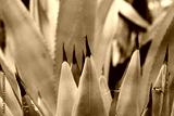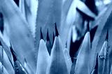 Agave fernandi regis. Succulent, cactus plant with long smooth leaves and long sharp black prickles on the end. A dangerous desert plants grows in Mexico. Agave plantation. Tequila leaves close up.
