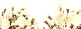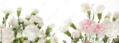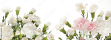 Beige flower bouquet on white horizontal long copy space background.