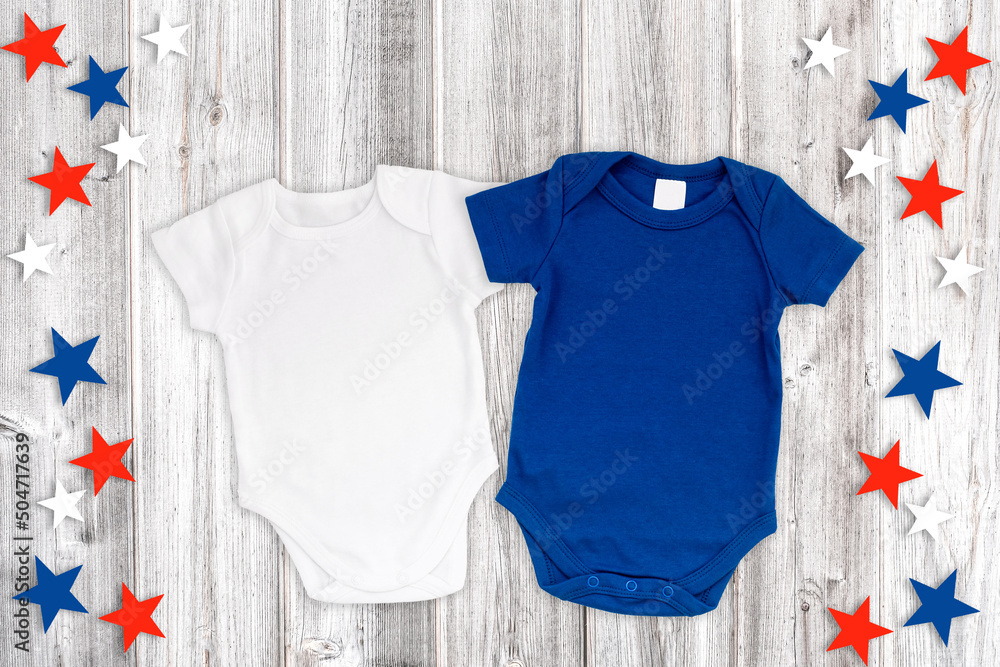 Two Baby Bodysuits Patriotic Flat Lay Mockup