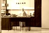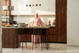 Muslim woman standing in kitchen with modern interior