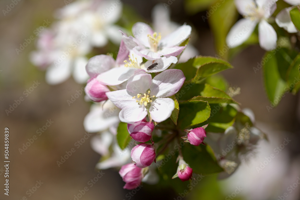 Horticulture of Gran Canaria - blossoming apple tree branches natural macro floral background