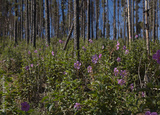 Flora of Gran Canaria - flowering pink Cistus ocreatus, rockrose endemic to the island, pyrophile plant, natural floral background