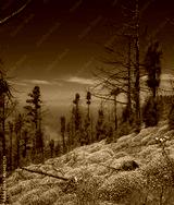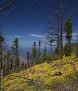 Flora of Gran Canaria - Pinus canariensis, fire-resistant Canary pine, zone affected by a wildfire, bottlebrush shaped trees