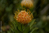 Yellow Leucospermum catherinae, Catherine-wheel protea natural macro floral background