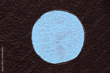 Grunge blue color painting as round shape on brown concrete wall textured background with copy space