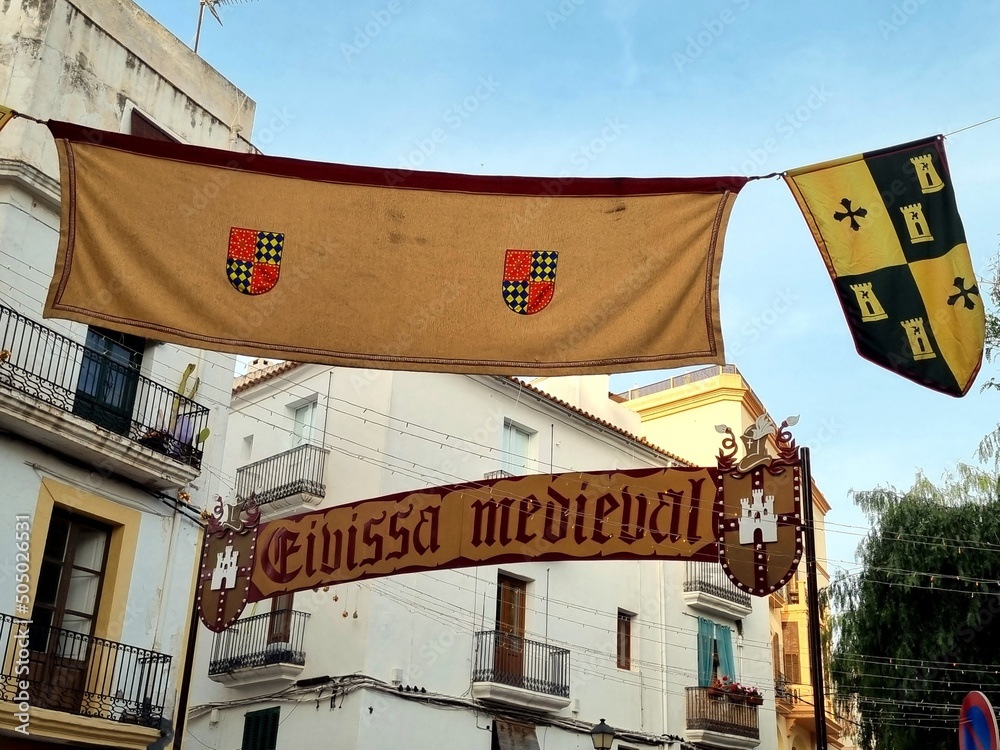The entrance of the Medieval Fair in Dalt Vila, Ibiza. In the sign it can be read 'Ibiza Medieval' in Catalan