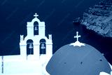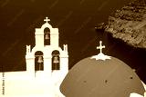 view of Fira, caldera, volcano of Santorini, Greece with cruise ships