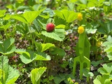 Strawberries bush in the garden. The first berry of a delicious strawberry. Beautiful rural scene.