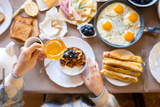Muesli with berries and honey. Breakfast. Fitness breakfast. Greek yogurt with cereal and honey. Cereal for breakfast. Honey pours on muesli with berries. Beautiful breakfast