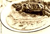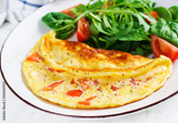 Omelette with tomatoes and salad on white plate. Frittata - italian omelet.