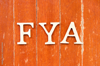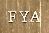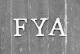 Alphabet letter in word FYA (Abbreviation of For your action or attention) on old red color wood plate background