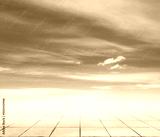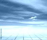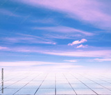 pink clouds, blue sky, gray floor.