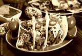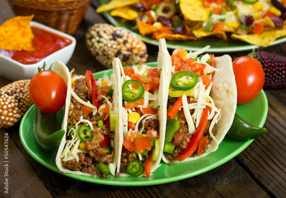 Beef taco on the plate with vegetables
