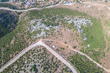 Meandering serpentine road in the mountain. Aerial view. Copter, drone view