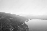 Meandering serpentine road in the mountain. Aerial view. Copter, drone view