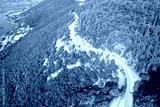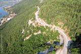 Meandering serpentine road in the mountain. Aerial view. Copter, drone view