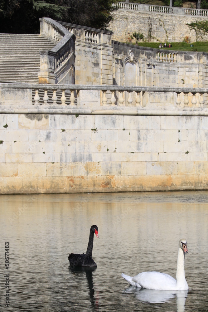 Les cygnes du jardin de la fontaine de Nîmes