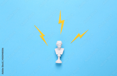 Venus bust with sparks from the eyes on a turquoise background. minimal concept. Pop Art