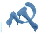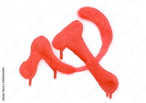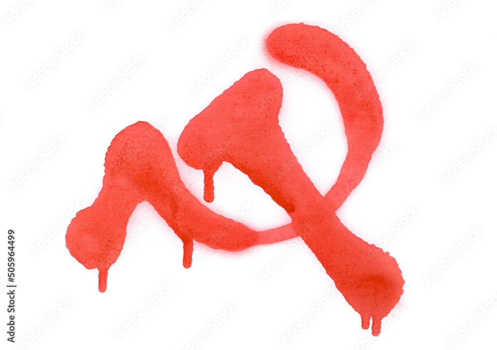 Red spray stain in shape sickle and hammer, symbol isolated on white