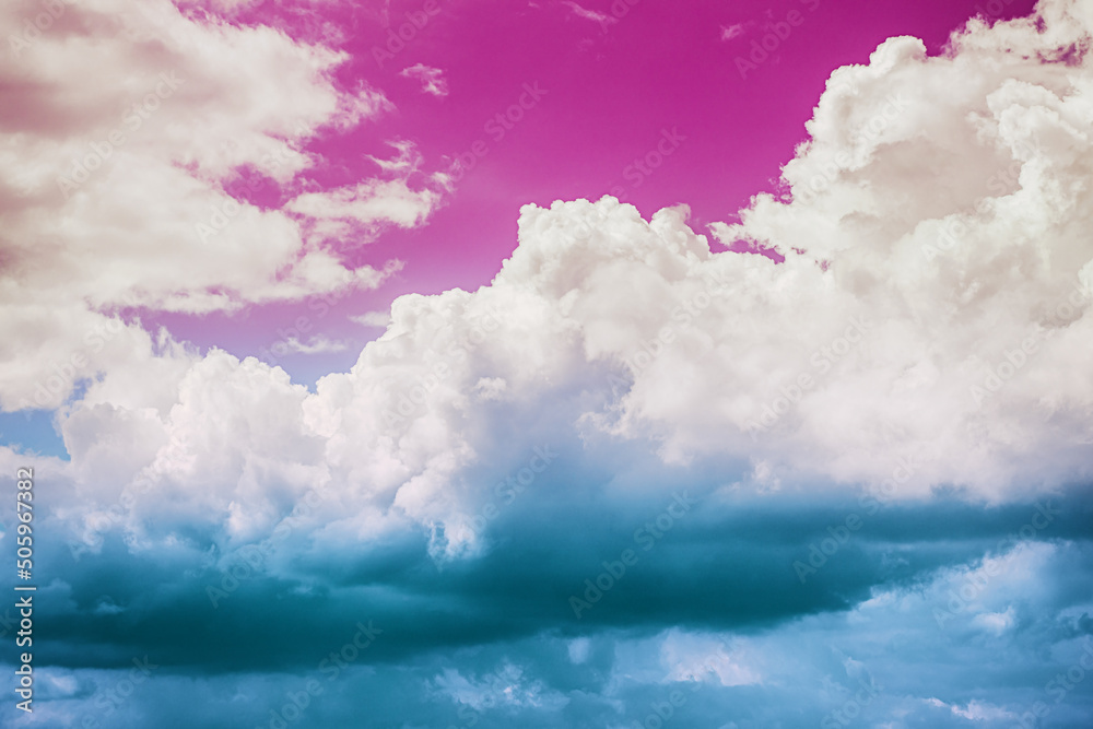 Duotone Toned Pink Magenta blue Clouds Cloud Sky. Background Cloudscape Abstract colors