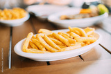 french fries on plate. street food, snacks,