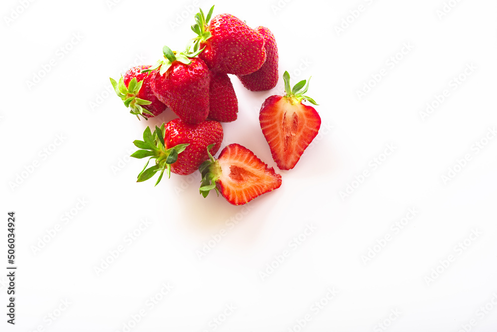 Strawberries isolated on white background. inside view. Sliced strawberries. half a berry