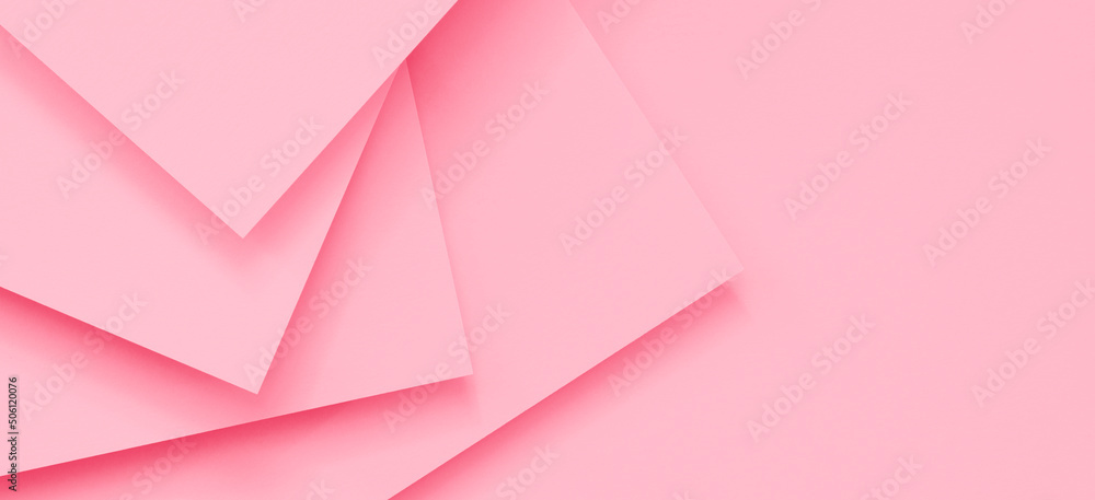 Abstract monochrome creative paper texture banner background. Minimal geometric pastel pink color shapes and lines. Top view