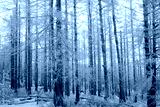Frost bildet sich an den Ästen an den Bäumen