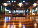 Table top wooden counter Bar Restaurant Interior Blur background