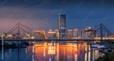 Panoramic night view of Belgrade Waterfront, river Sava and Old Belgrade