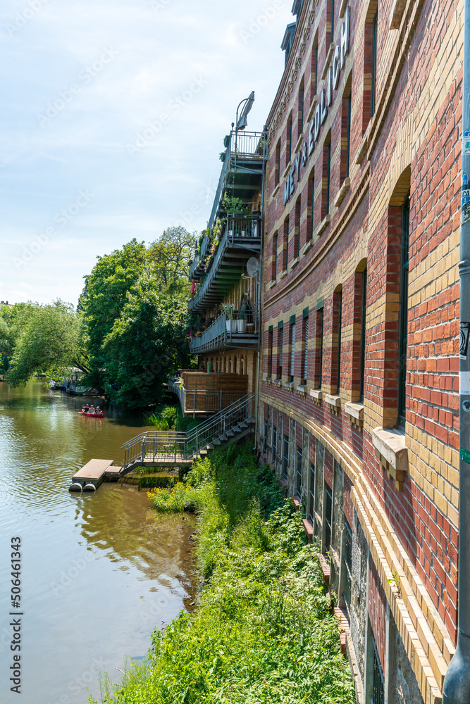 View from the Könneritzbrücke at the Weiße Elster river in Leipzig, Germany