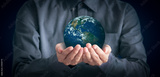 People holding earth globe, International human solidarity day concept, world health day, safe world concept with copy space, Elements of this image furnished by NASA