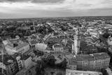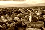 Bielsko-Biala from a drone on a sunny day. Town Hall and the characteristic buildings in the city.