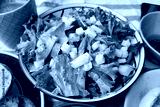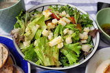 Close up a bowl of green salad with cheese. Daily healthy breakfast.