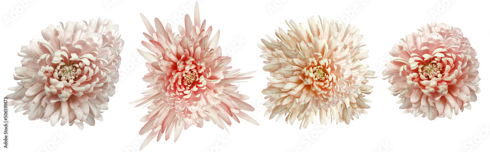 Light red chrysanthemums flowers on white isolated background with clipping path. Closeup.. Nature.