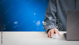 Businessman using smartphone connection with computer, connection network wireless devices, digital hologram technology and internet of things, big data, cloud storage management concept