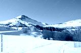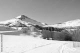 Beautiful snowy mountain landscape, during winter, with a volcanic mountain.