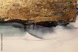 Art Abstract watercolor marble flow blot painting. Black, beige and gold Color canvas texture horizontal background. Alcohol ink.