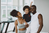 black family people with young mother and son happy healthcare together at fitness sport club.