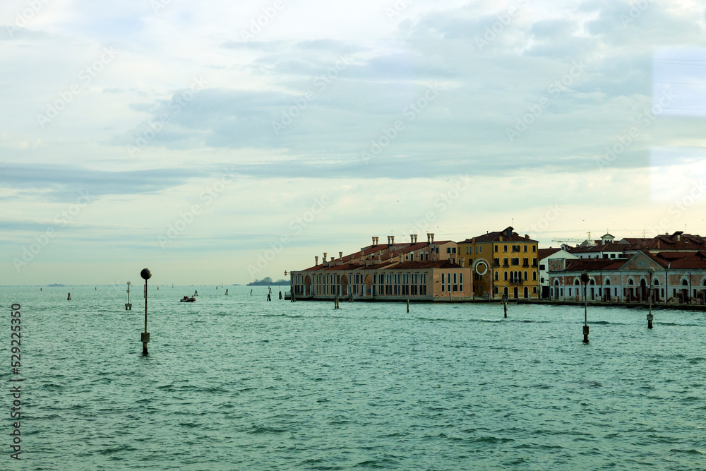 Walking through Santorini streets. Traditional Greek white houses architecture.