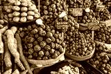 Different types of potatoes at the local market in Arequipa city, Peru, South America.