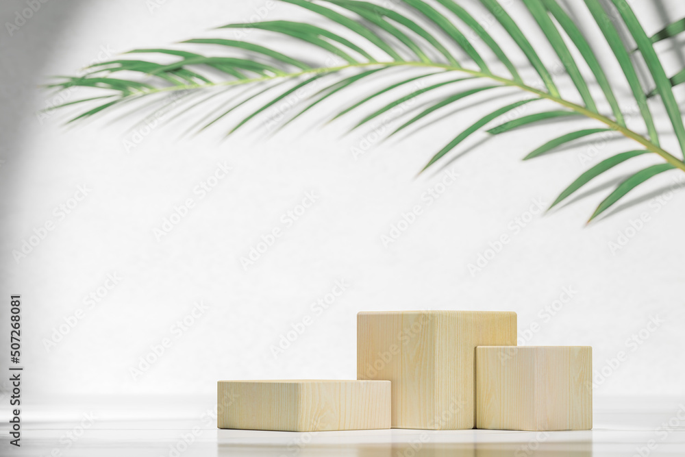 Exhibition and business presentation stage. Elegant modern geometric style of showcase for cosmetics product display. Simple podium as showcase for products