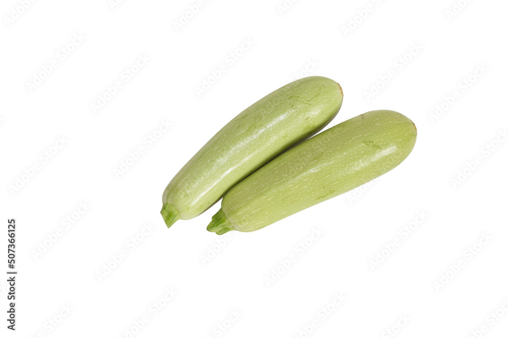 Two zucchini isolated on white background, top view.