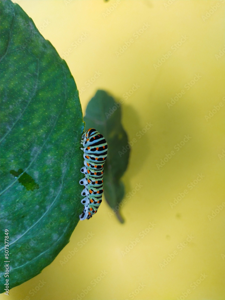 heliothis. Colorful worm eating green leaf
