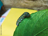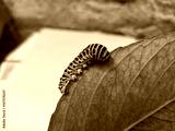 big green leaf of lemon tree and worm. selective focus