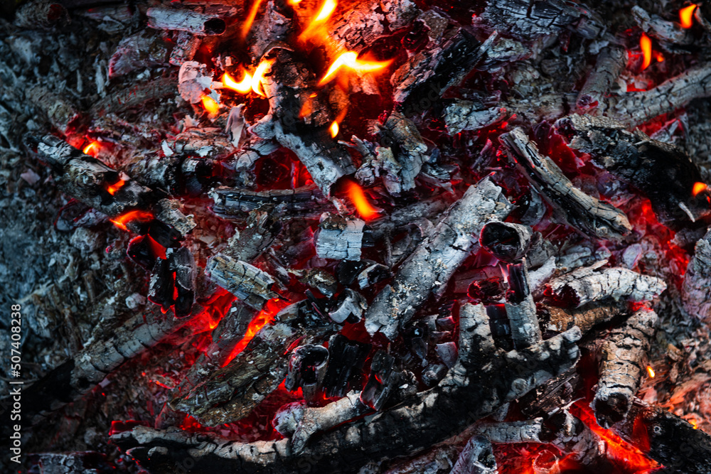 Charcoal for barbecue with flame background