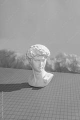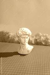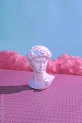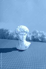 Michelangelo's David in the virtual cyberpunk metaverse.