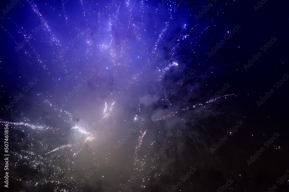 Colorful closeup fireworks light up the sky