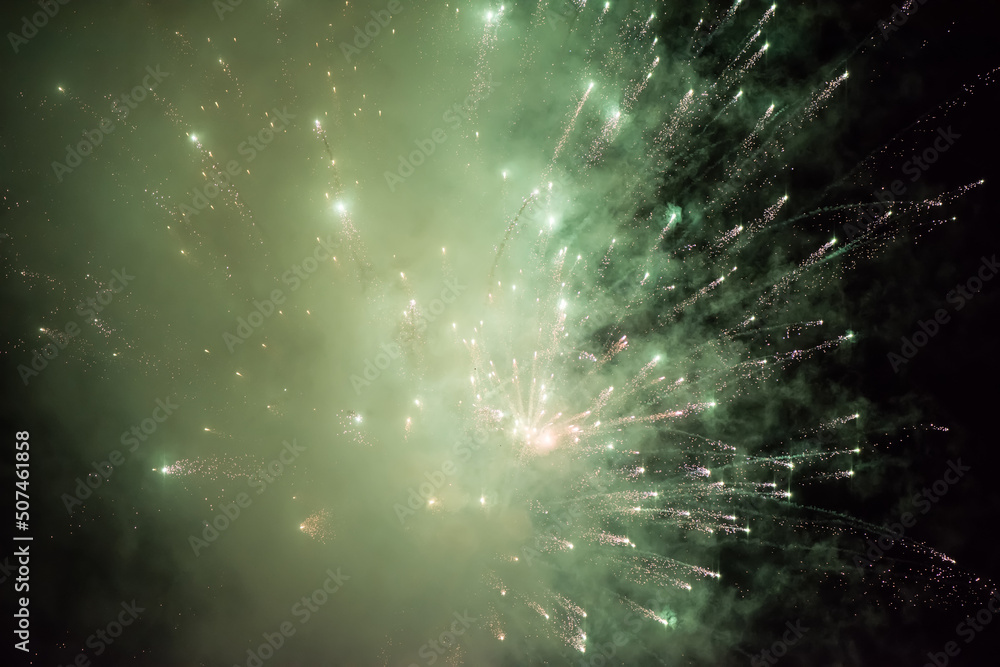 Colorful closeup fireworks light up the sky
