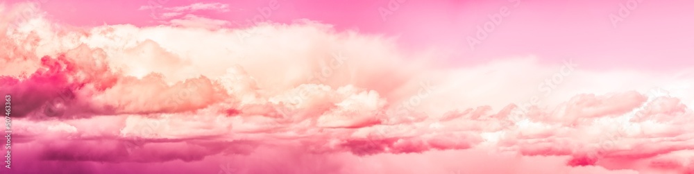 Panorama of sky with effect of living coral colors. Color of the year 2019. livingcoral